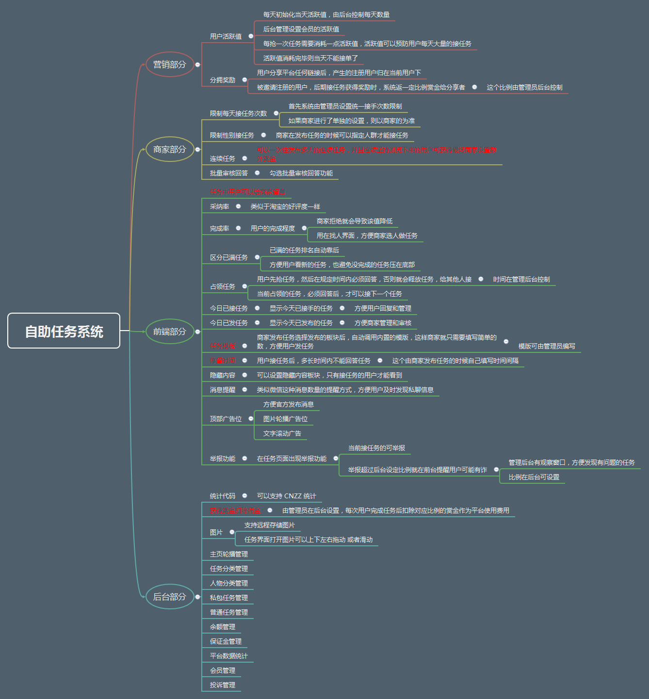 自助任务系统APP版功能拓扑图